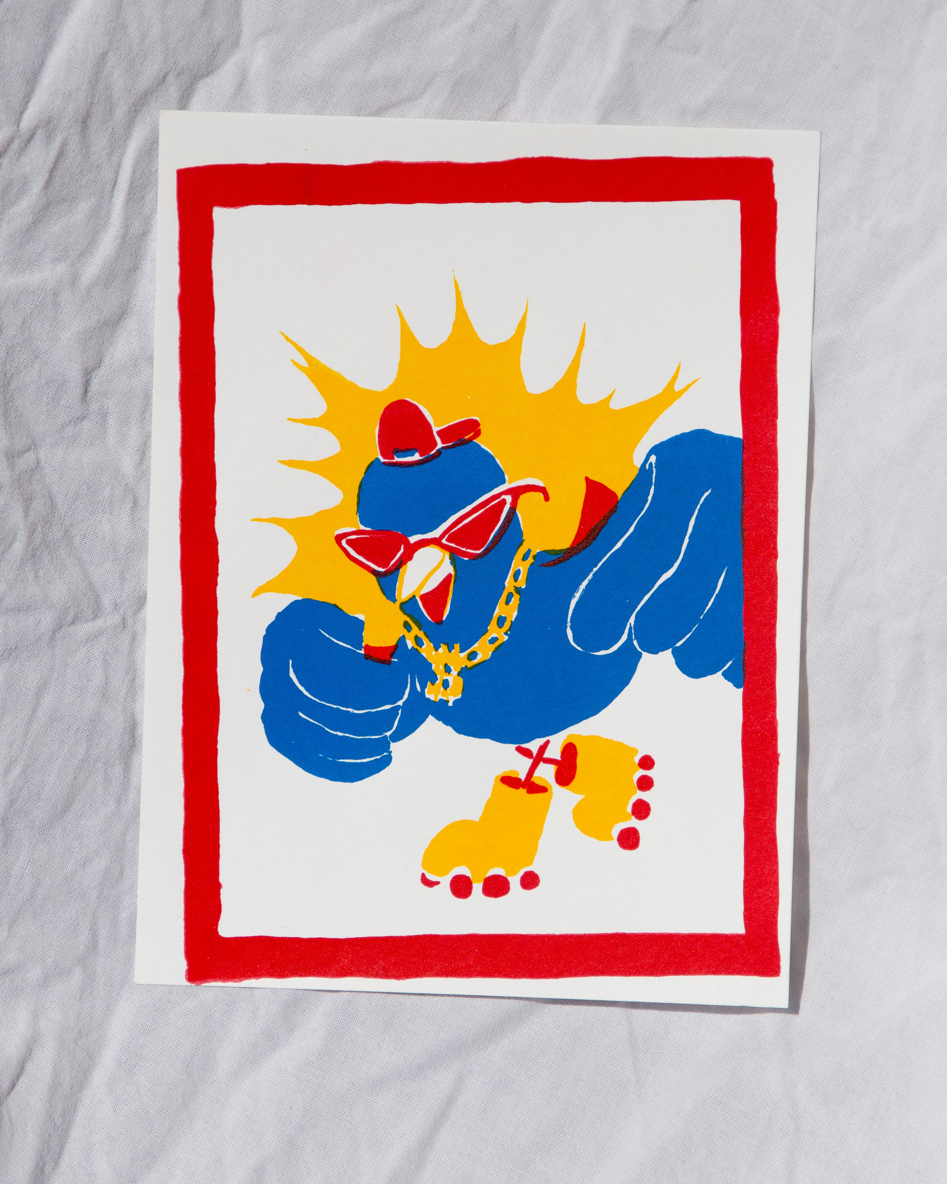 A spontaneous illustration that I created with the goal of turning it into a screen-printed piece. This project was a way to experiment with graphic shapes and textures while keeping a sense of lightness and play.
